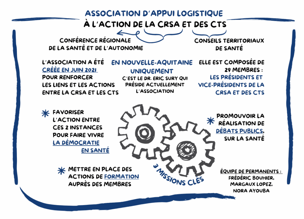 Pour remplir cette fonction, elle est signataire d’un Contrat Pluriannuel d’Objectifs et de Moyens (CPOM) avec l’Agence Régionale de Santé (ARS) de Nouvelle-Aquitaine. La mission de secrétariat des instances relève toujours d’une mission réglementaire de l’ARS prévue par le Code de la santé publique.